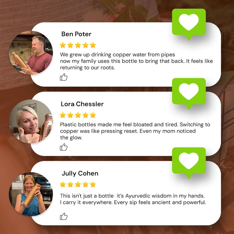 Our Pure Copper Wellness Bottle is lab-certified 99.9% pure copper, lead-free, and FDA approved. It's the authentic Ayurvedic choice for superior hydration and well-being.